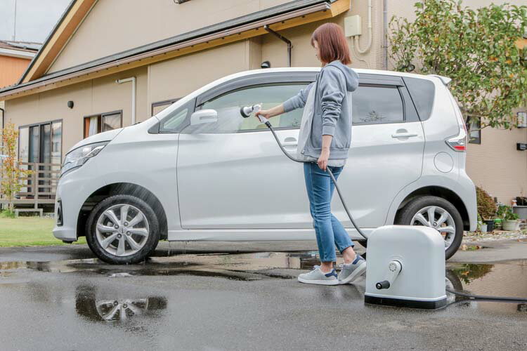 1.5倍の散水量のワイドアクアガンは、握った分だけ水が出る水量調整機能付き。