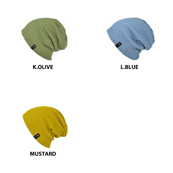 幅広いサイズに対応できるワッフル生地のビッグワッチは伸縮性もあり、頭まわりの大きな方にもオススメ。